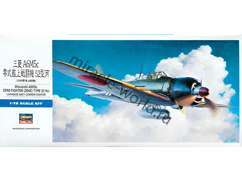 Сборная модель японского палубного истребителя Mitsubishi A6M5c Zero Type 0 Model 52 "Zeke / Hei" в масштабе 1/72 от фирмы Hasegawa (артикул 00453).