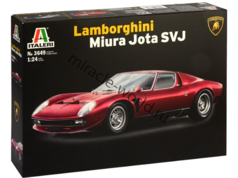 Сборная модель итальянского легкового автомобиля Lamborghini Miura Jota SVJ в масштабе 1/24 от фирмы Italeri (артикул 3649).