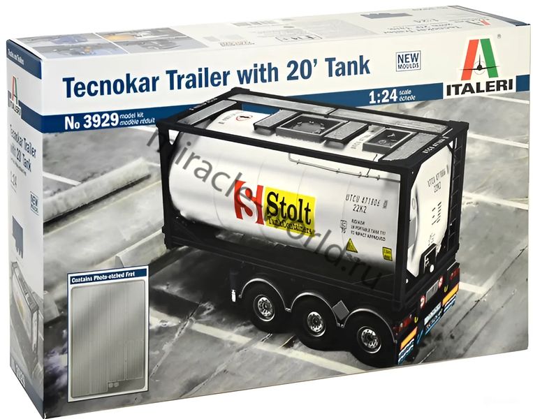 Сборная модель полуприцепа с цистерной Tecnokar Trailer with 20' Tank в масштабе 1/24 от фирмы Italeri (артикул 3929).