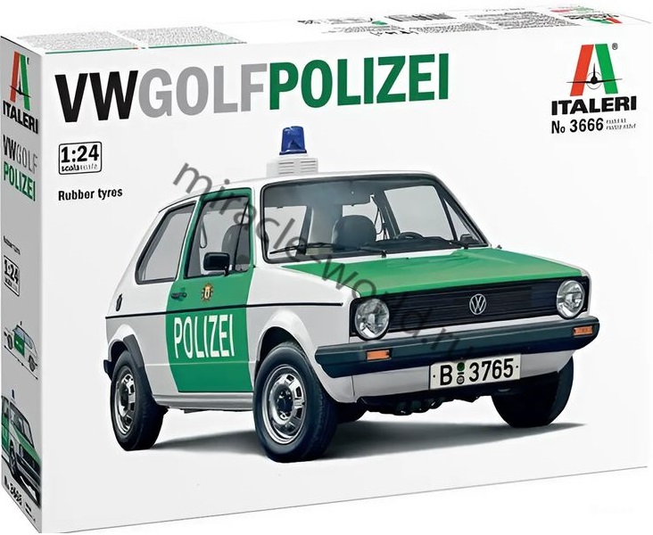Сборная модель немецкого автомобиля VW Golf "Polizei" в масштабе 1/24 от фирмы Italeri (артикул 3666).