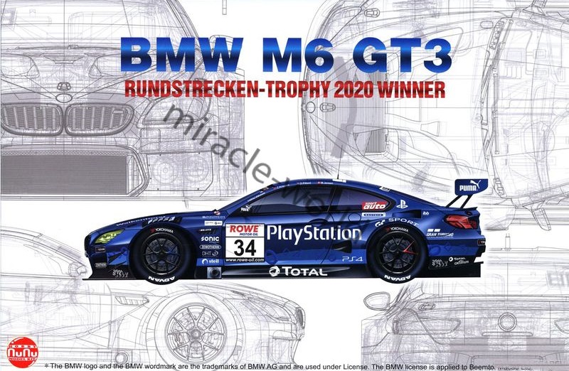 Сборная модель немецкого спортивного автомобиля BMW M6 GT3 "Rundstrecken-Trophy 2020 Winner" в масштабе 1/24 от фирмы NuNu (артикул 24027).