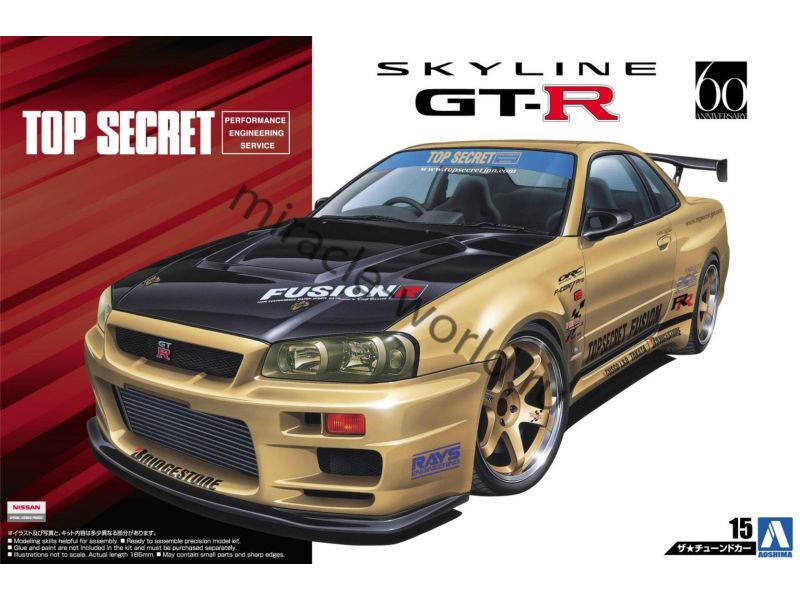 Aoshima 005304 Nissan Skyline GT-R (R34) 2002г. тюнинг "TopSecret" 1/24