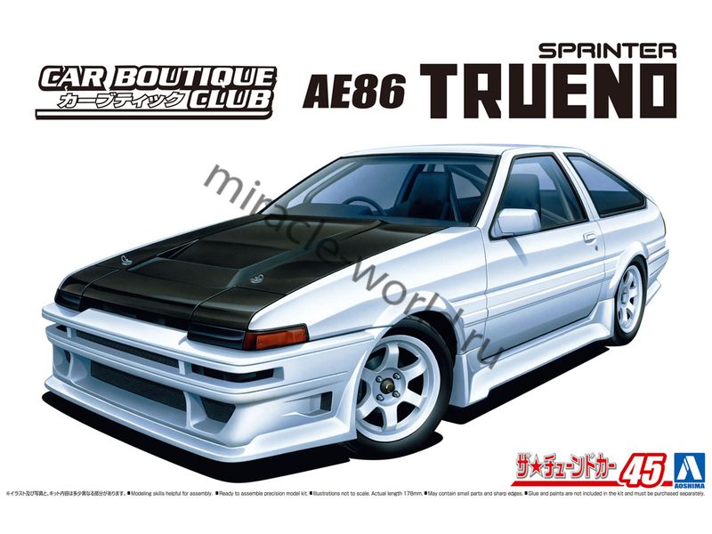 Сборная модель японского автомобиля Toyota Trueno AE86 Car Boutique Club в масштабе 1/24 от фирмы Aoshima (артикул 05863).