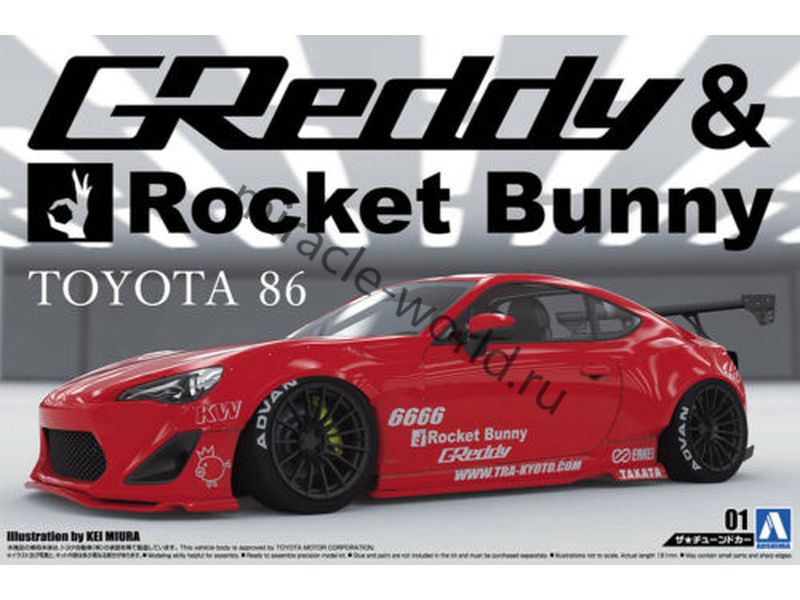 Сборная модель японского автомобиля Toyota 86 '12 "GReddy & Rocket Bunny" в масштабе 1/24 от фирмы Aoshima (артикул 06186).