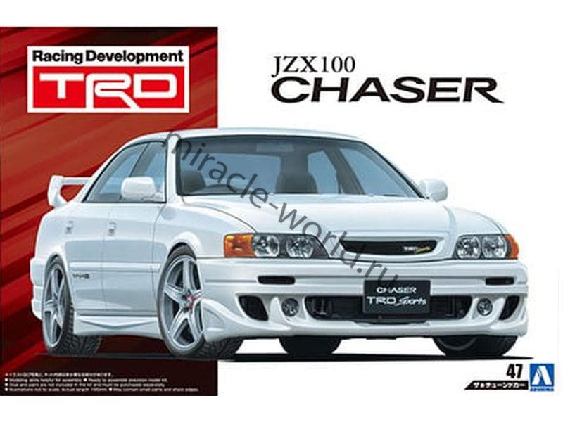 Сборная модель японского автомобиля Toyota Chaser TRD JZX100 '98 в масштабе 1/24 от фирмы Aoshima (артикул 05985).