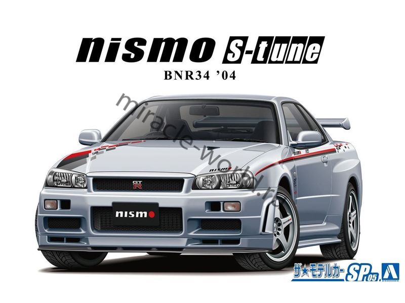Сборная модель японского автомобиля Nissan Skyline GT-R R34 Nismo S-Tune '04 в масштабе 1/24 от фирмы Aoshima (артикул 06607).