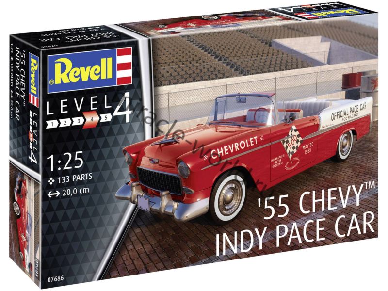 Сборная модель американского автомобиля Chevrolet "Chevy" Indy Pace Car 1955г. в масштабе 1/25 от фирмы Revell (артикул 07686).