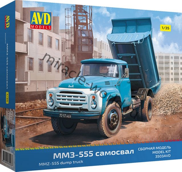 Сборная модель советского самосвала Автомобиль (З) тип ММЗ-555 (бортовой) в масштабе 1/35 от фирмы AVD Models (артикул 3503).