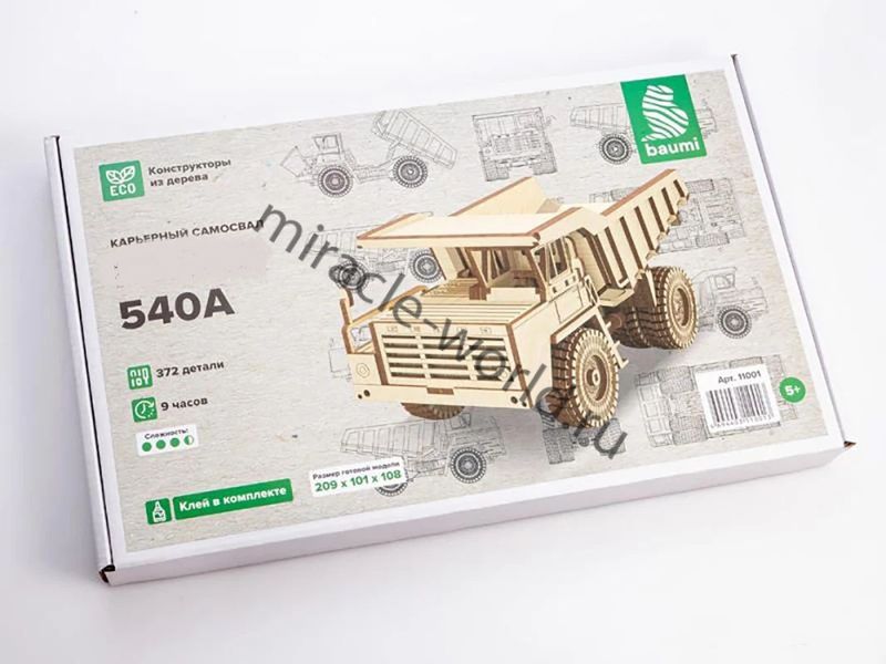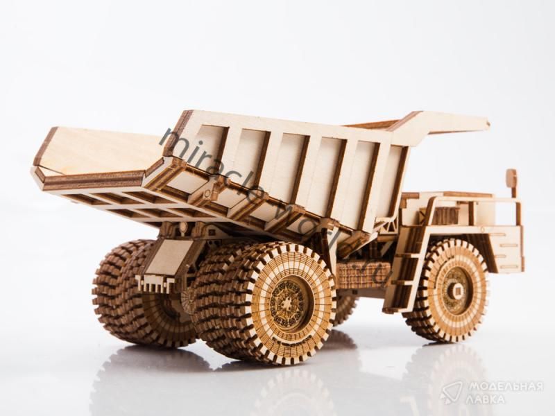 Сборная модель беларусского большегрузного самосвала из дерева Беларусский автозавод-540А в масштабе 1/35 от фирмы Baumi (артикул 11001).