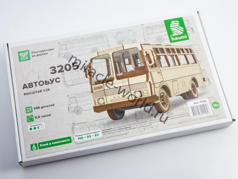 Сборная модель российского автобуса из дерева Автобус тип 3205 в масштабе 1/35 от фирмы Baumi (артикул 11105).