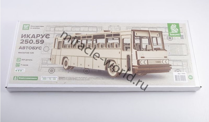 Сборная модель венгерский автобус из дерева Икарус-250.59 в масштабе 1/35 от фирмы Baumi (артикул 11101).