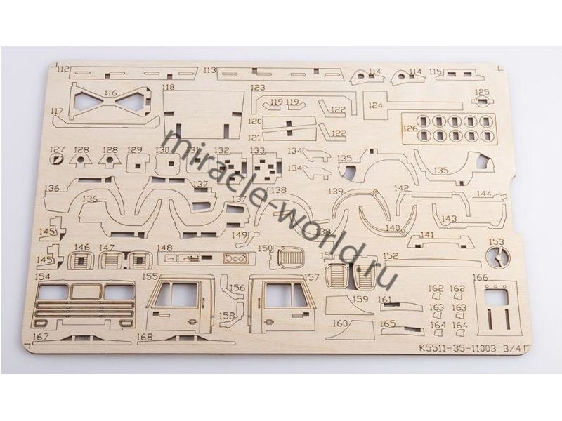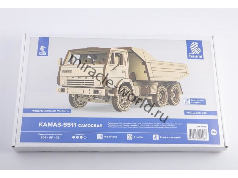 Сборная модель российского самосвала из дерева КамАЗ-4310 в масштабе 1/35 от фирмы Baumi (артикул 11003).