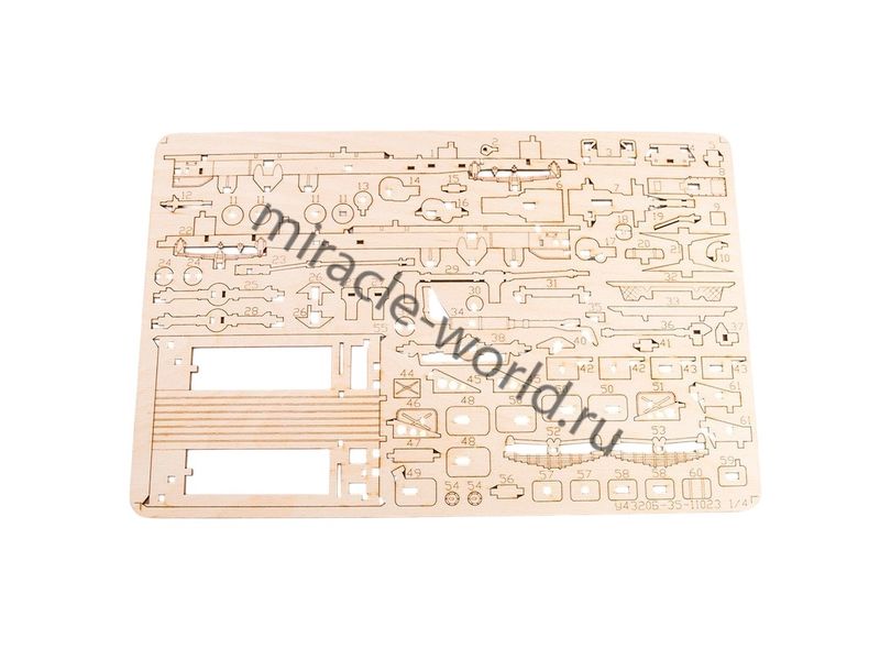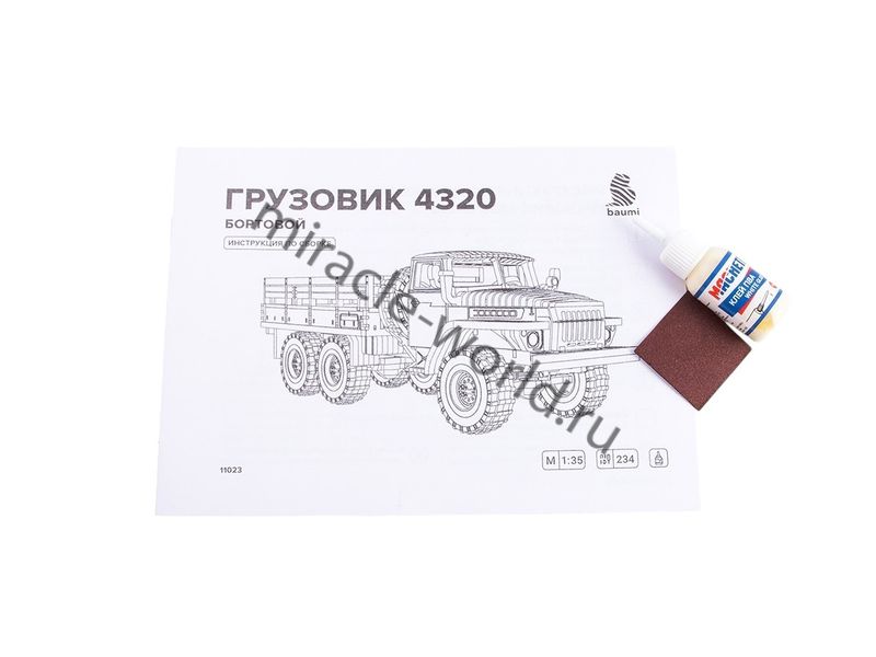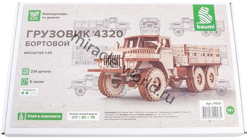 Сборная модель советского / российского грузовика из дерева Автомобиль (У) тип 4320 (бортовой) в масштабе 1/35 от фирмы Baumi (артикул 11023).