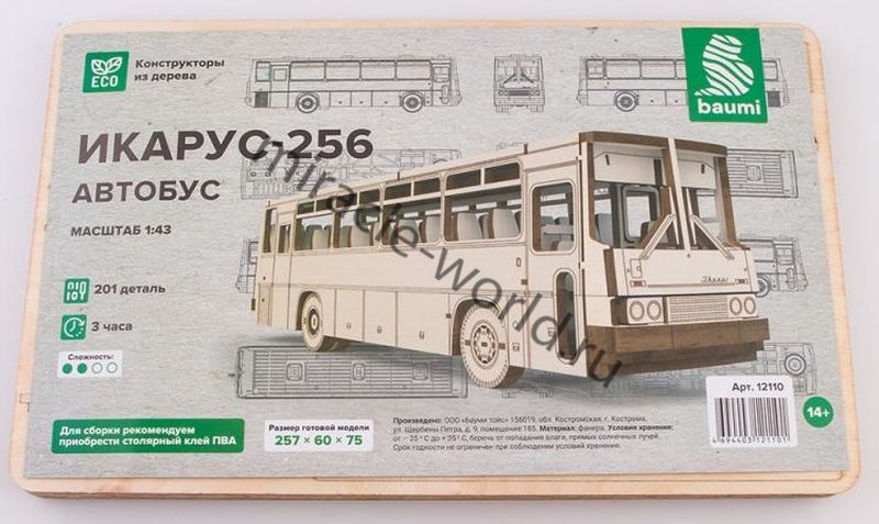 Сборная модель венгерского автобуса из дерева Икарус-256 в масштабе 1/43 от фирмы Baumi (артикул 12110).