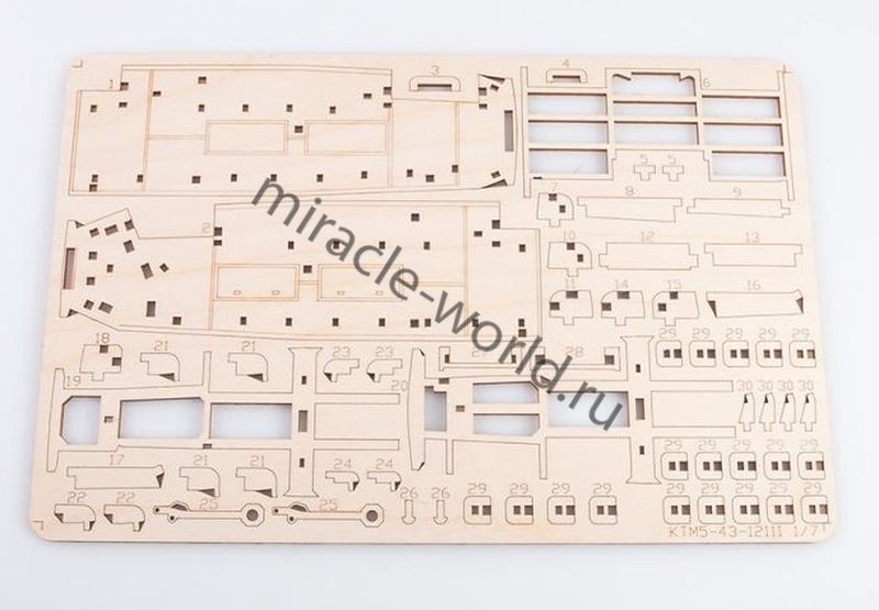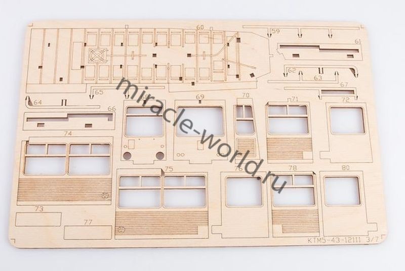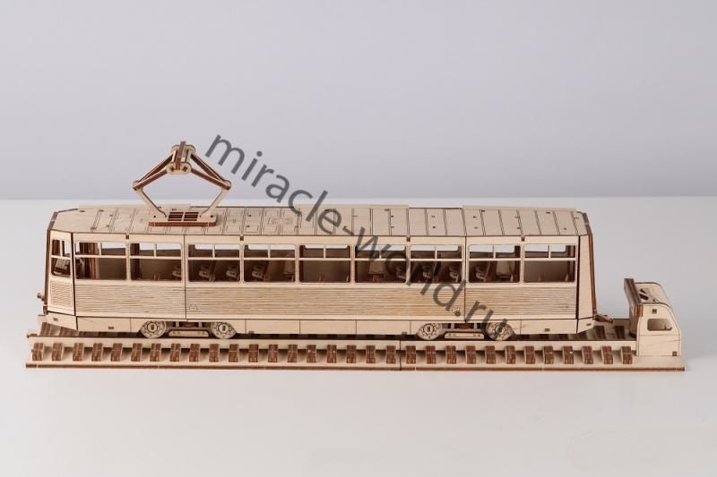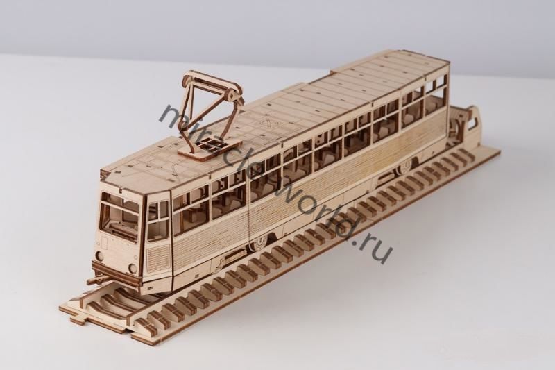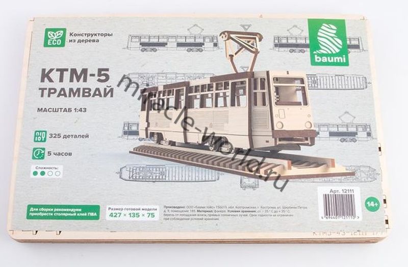 Сборная модель советского трамвая из дерева КТМ-5 в масштабе 1/43 от фирмы Baumi (артикул 12111).