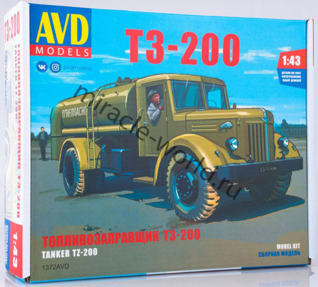 Сборная модель советского топливозаправщика ТЗ-200 на базе МАЗ-200 в масштабе 1/43 от фирмы AVD Models (артикул 1372).