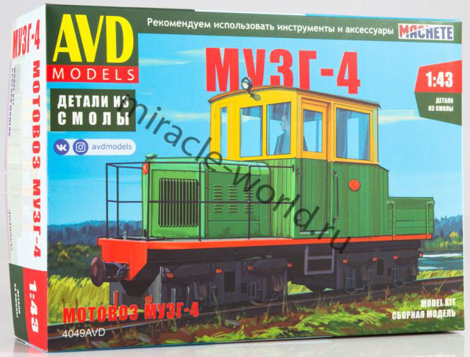 Сборная модель советского мотовоза ТГК-2 в масштабе МУЗГ-4 от фирмы AVD Models (артикул 4049).