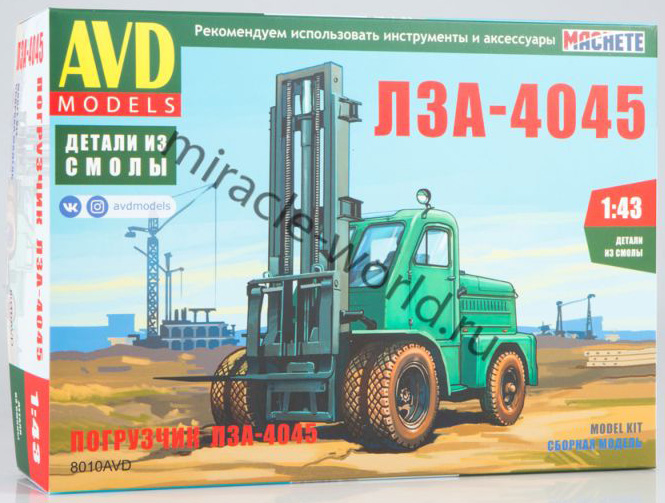 Сборная модель украинского автопогрузчика ЛЗА-4045 в масштабе 1/43 от фирмы AVD Models (артикул 8010).