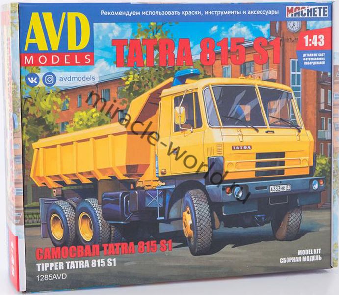 Сборная модель чешского самосвала Tatra 815 S1 / T-815 S1 в масштабе 1/43 от фирмы AVD Models (артикул 1285).