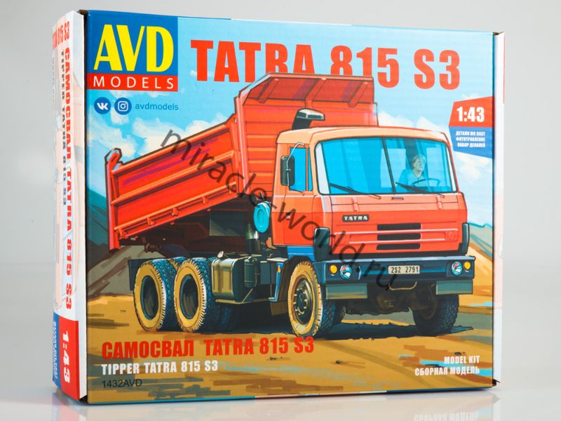 Сборная модель чешского самосвала Tatra-815 S3 в масштабе 1/43 от фирмы AVD Models (артикул 1432).