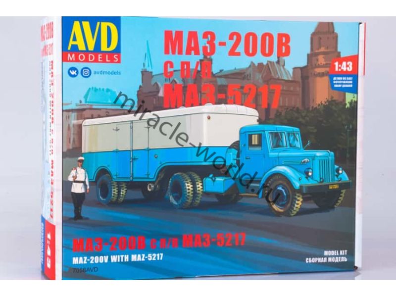Сборная модель беларусского седельного тягача МАЗ-200В с полуприцепом МАЗ-5217 в масштабе 1/43 от фирмы AVD Models (артикул 7058).