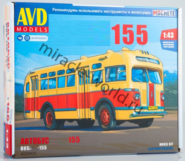 Сборная модель советского пассажирского автобуса Автомобиль тип 155 в масштабе 1/43 от фирмы AVD Models (артикул 4025).