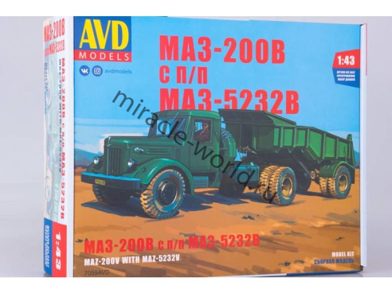 Сборная модель беларусского седельного тягача МАЗ-200В с полуприцепом МАЗ-5232В в масштабе 1/43 от фирмы AVD Models (артикул 7059).