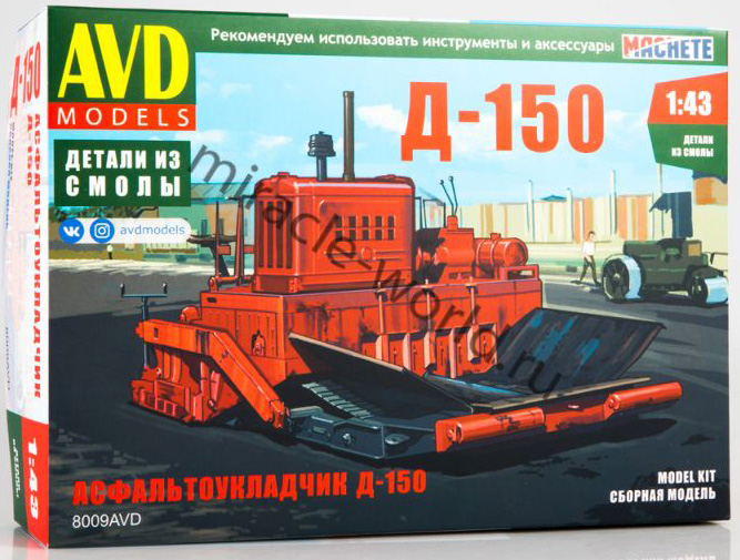 Сборная модель советского асфальтоукладчика Д-150 в масштабе 1/43 от фирмы AVD Models (артикул 8009).