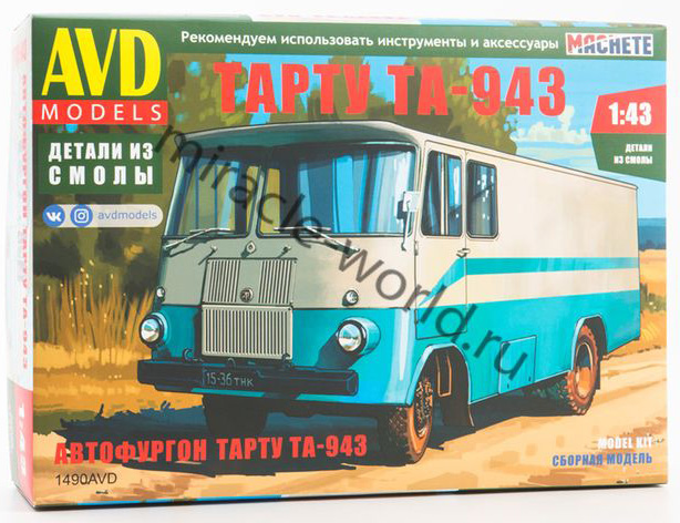 Сборная модель советского изотермического автофургона Тарту ТА-943 на базе Автомобиль (Г) тип 52-01 в масштабе 1/43 от фирмы AVD Models (артикул 1490).