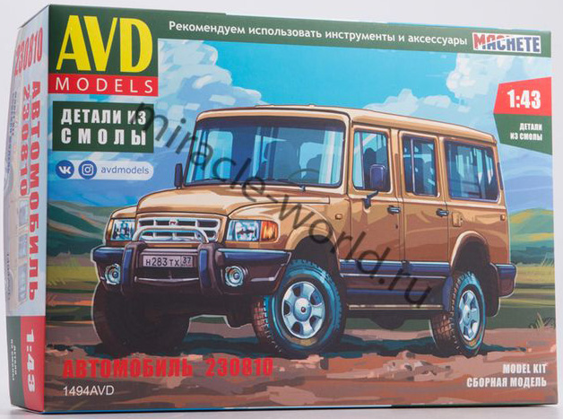 Сборная модель российского автомобиля повышенной проходимости Автомобиль (Г) тип 230810 «Атаман» в масштабе 1/43 от фирмы AVD Models (артикул 1494).