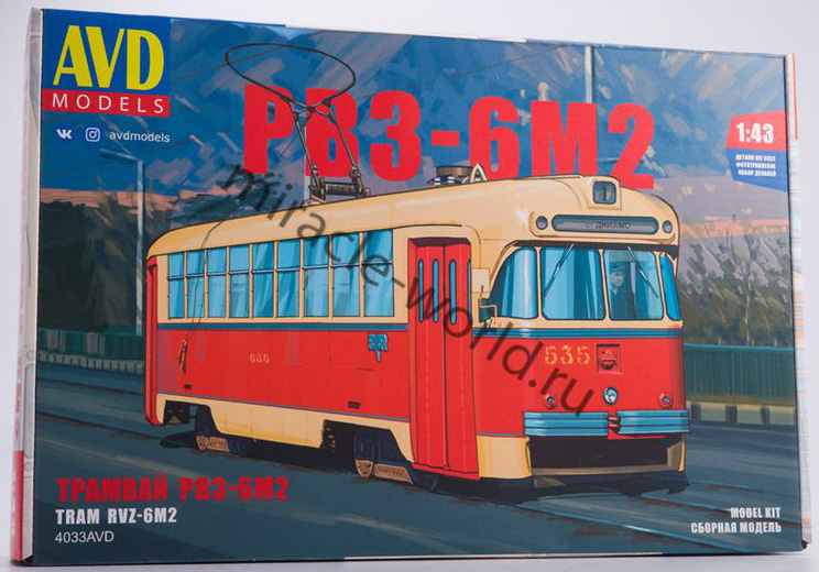 Сборная модель советского высокопольного трамвая РВЗ-6М2 в масштабе 1/43 от фирмы AVD Models (артикул 4033).