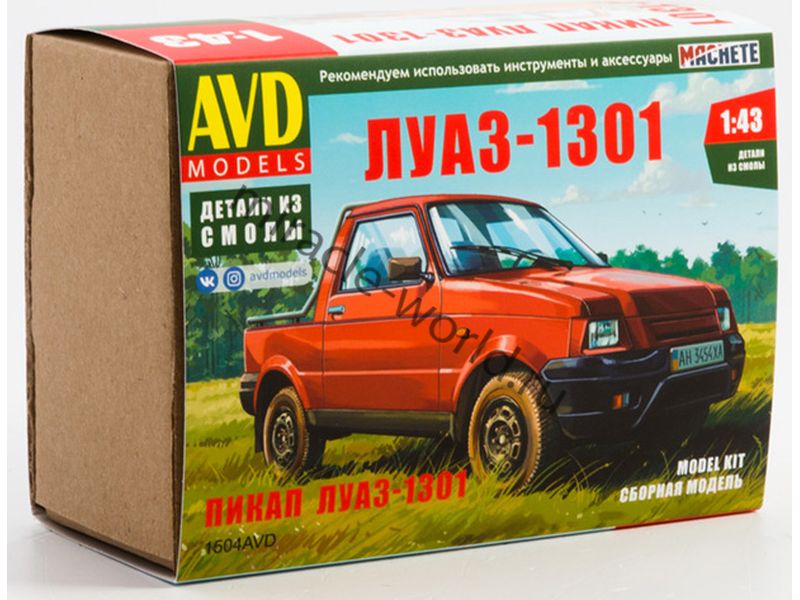 Сборная модель советско - украинского пикапа ЛУАЗ-1301 в масштабе 1/43 от фирмы AVD Models (артикул 1504).