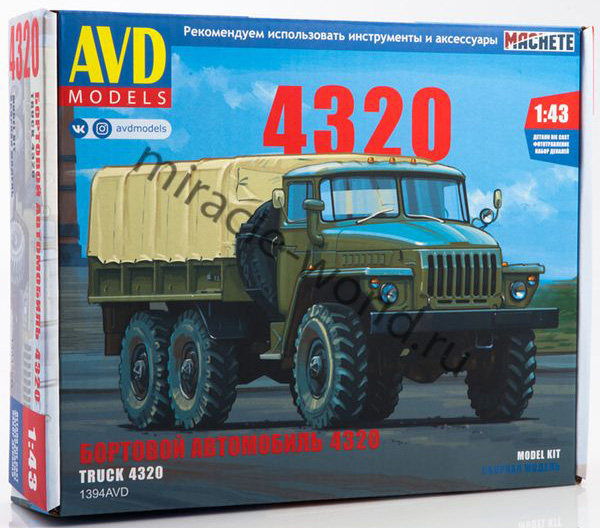 Сборная модель советского и российского грузового автомобиля повышенной проходимости Автомобиль (У) тип 4320 в масштабе 1/43 от фирмы AVD Models (артикул 1394).