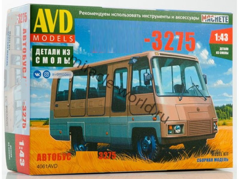 Сборная модель советского автобуса Курганский автобус 3275 в масштабе 1/43 от фирмы AVD Models (артикул 4061).