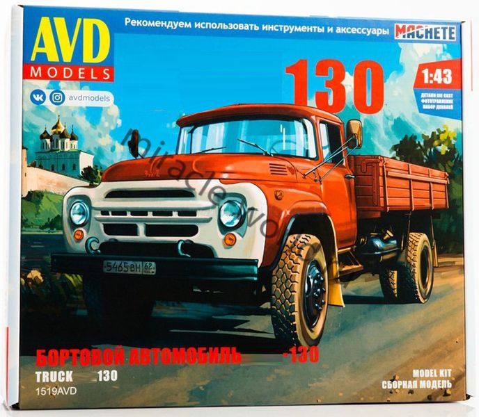 Сборная модель советского / российского среднетоннажного грузового автомобиля Автомобиль (З) тип 130 (бортовой) в масштабе 1/43 от фирмы AVD Models (артикул 1519).