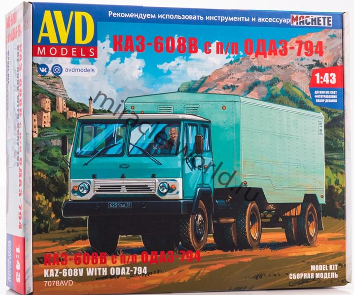 Сборная модель грузинского грузового автомобиля КАЗ-608В "Колхида" с полуприцепом ОДАЗ-794 в масштабе 1/43 от фирмы AVD Models (артикул 7078).