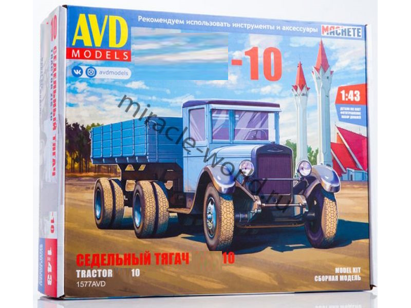 Сборная модель советского седельного тягача с полуприцепом Автомобиль (З) тип 10 в масштабе 1/43 от фирмы AVD Models (артикул 1577).