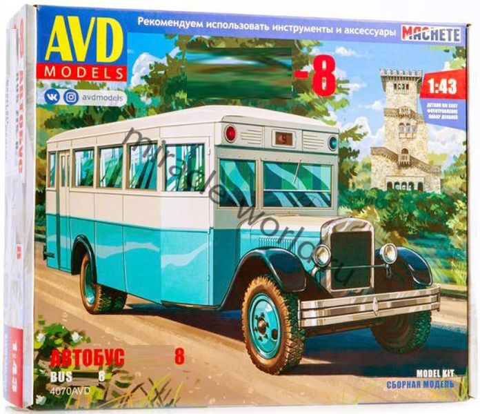 Сборная модель советского Автобус тип 8 в масштабе 1/43 от фирмы AVD Models (артикул 4070).