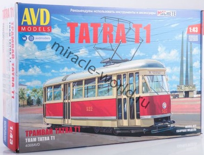 Сборная модель чешского высокопольного трамвая Tatra T1 в масштабе 1/43 от фирмы AVD Models (артикул 4068).