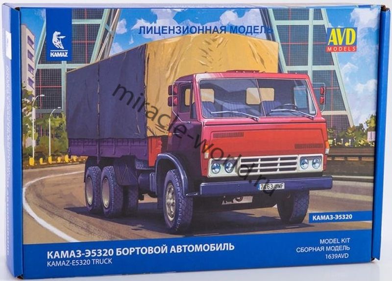 Сборная модель российского бортового автомобиля КамАЗ-Э5320 в масштабе 1/43 от фирмы AVD Models (артикул 1639).