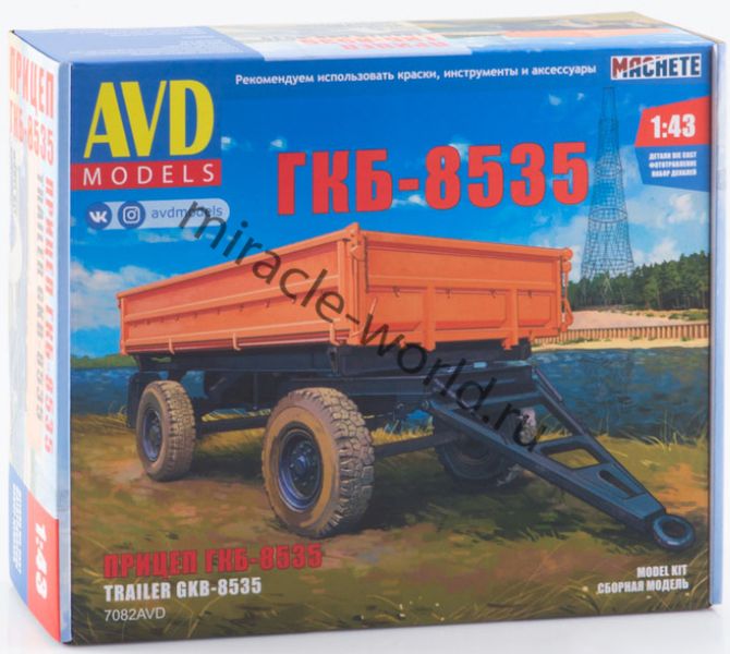 Сборная модель советского / российского прицепа ГКБ-8535 в масштабе 1/43 от фирмы AVD Models (артикул 7082).