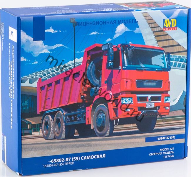 Сборная модель российского самосвала КамАЗ-65802-87 (S5) в масштабе 1/43 от фирмы AVD Models (артикул 1657).