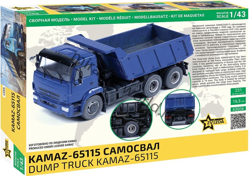 Сборная модель российского самосвала КамАЗ-65115" в масштабе 1/43 от фирмы Звезда / Zvezda (артикул 43006).