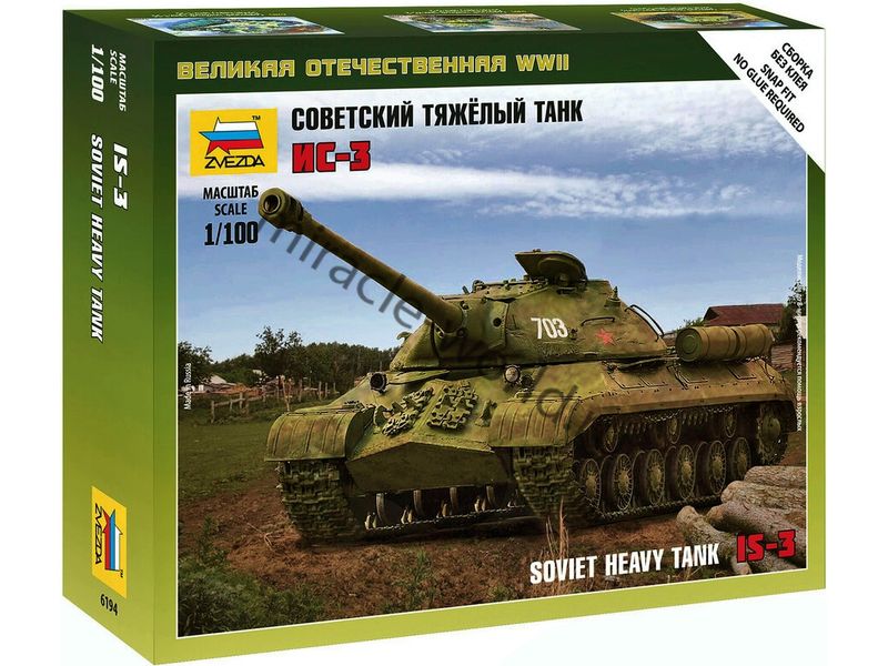 Сборная модель советского тяжелого танка ИС-3 в масштабе 1/100 от фирмы Звезда / Zvezda (артикул 6194).