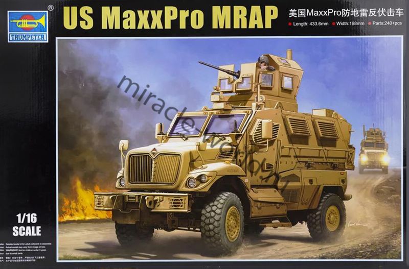 Сборная модель американского бронетранспортера с усиленной противоминной защитой M1235A1 “MaxxPro” MRAP в масштабе 1/16 от фирмы Trumpeter (артикул 00931).
