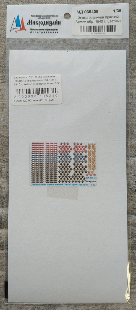 Барахолка: 35358 Микродизайн 035409 Знаки отличия РККА обр. 1940 г. /набор фототравления/ 1/35