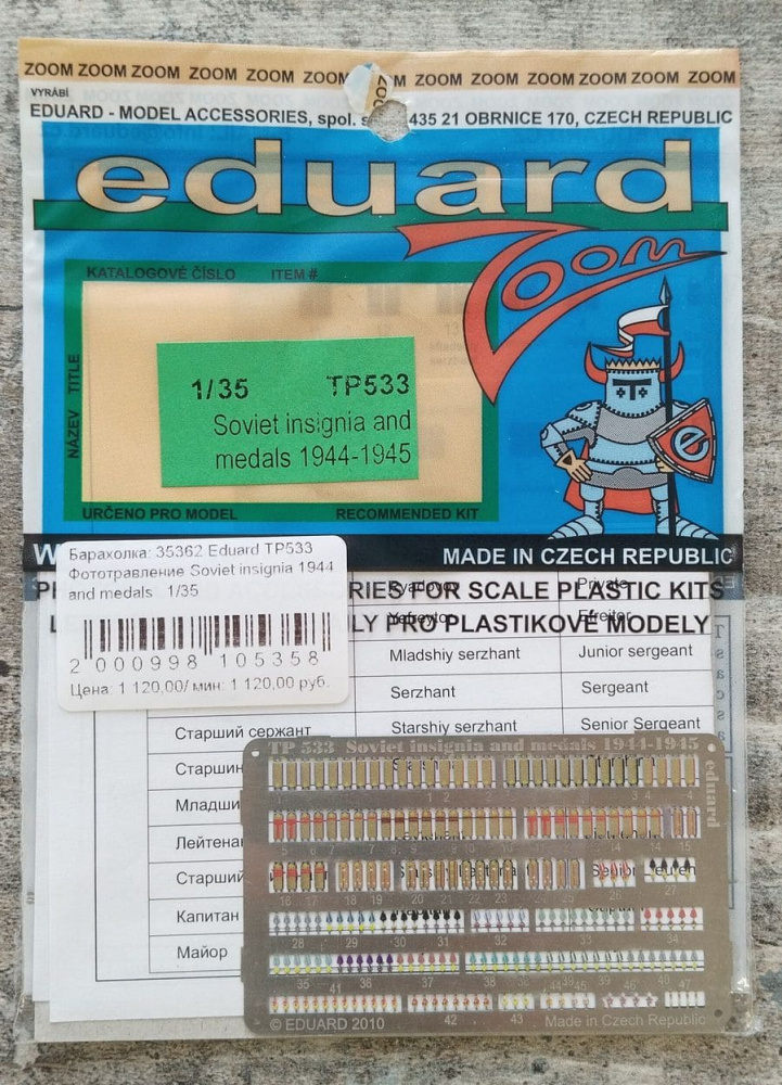 Барахолка: 35362 Eduard TP533 Фототравление Soviet insignia 1944 and medals 1/35