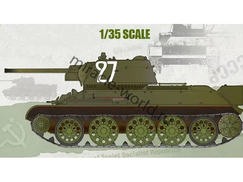 Сборная модель среднего танка Танк тип 34/76 "Factory 183" в масштабе 1/35 от фирмы Academy (артикул 13505).