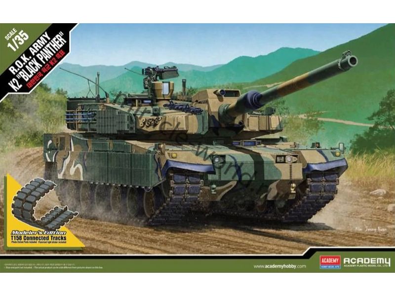 Сборная модель корейского основного боевого танка K2 "Black Panther" в масштабе 1/35 от фирмы Academy (артикул 13511).