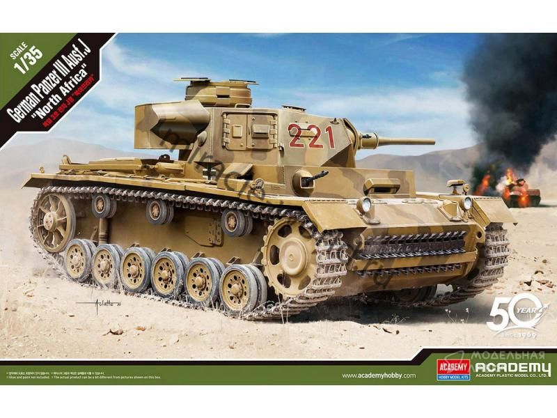 Сборная модель немецкого среднего танка Sd.Kfz.141 Pz.Kpfw.III Ausf.J "North Africa" в масштабе 1/35 от фирмы Academy (артикул 13531).